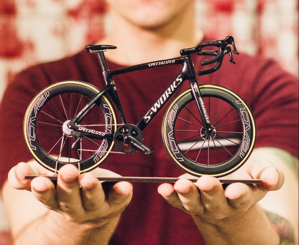Acaba de llegar a mis manos la réplica del modelo S-Works Venge de la marca Specialized. A simple vista, se puede notar que es una exquisita obra de arte en escala 1/8 de su modelo real. Esta pequeña es la representación de una bici icónica, que ha llevado a Peter “Peto” Sagan a ganar consecutivamente tres mundiales de ciclismo de ruta.